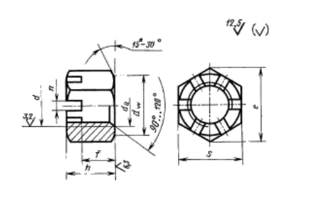 Гайки шестигранные прорезные с уменьшенным размером "под ключ", класс точности А ГОСТ 2528-73.